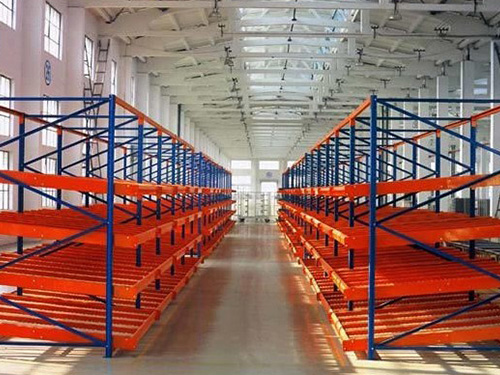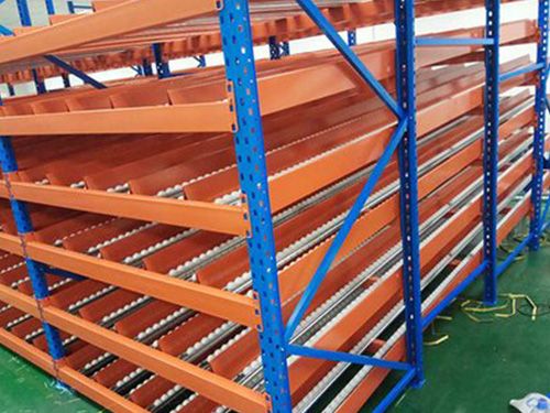 流利式货架特点:流利式货架通常由中型横梁式货架演变而成,货架每层前后横梁之间设滚轮式铝合金或饭金流力条呈一定坡度(3°左右)放置。货物通常为纸包装或将货物放干塑料周转箱内,利用其自重实现货物的流动和先进先出,单元货架每层载重通常在1000kg以内,货架高度在2.5米以内。